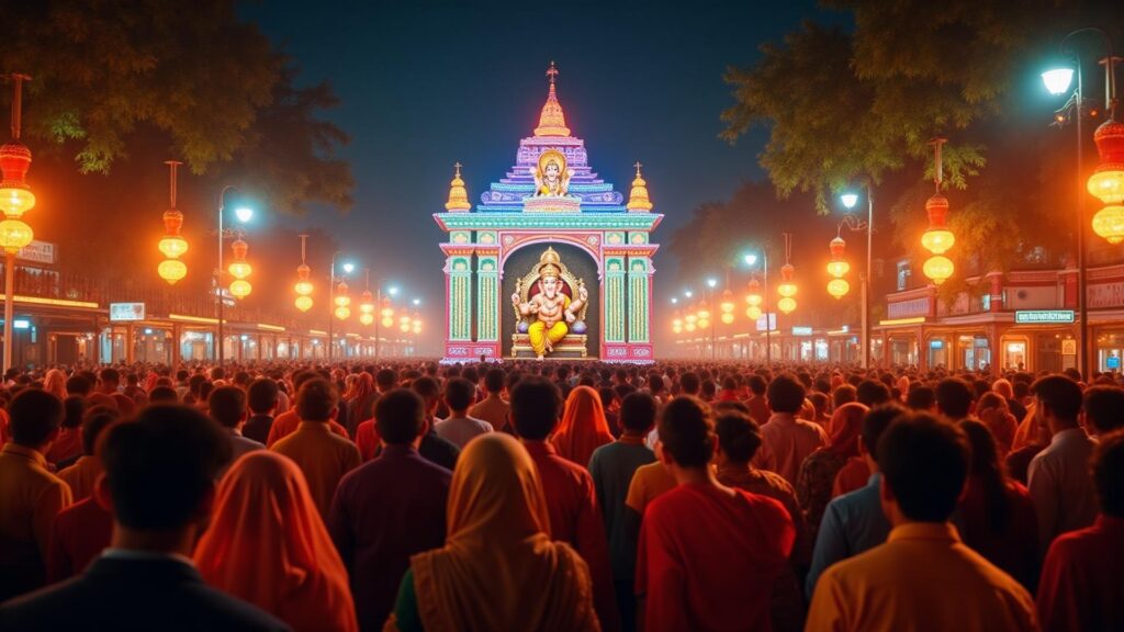 Grand pandals with devotional celebrations